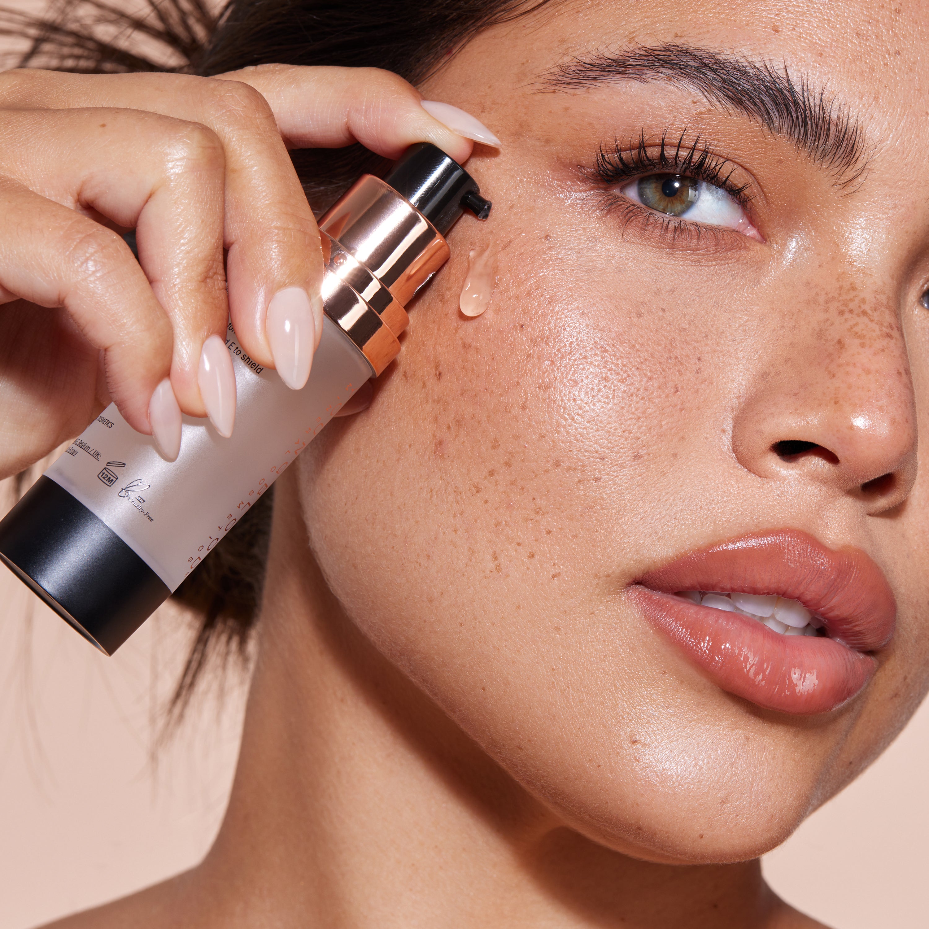 Aplica una o dos pulsaciones en las yemas de los dedos y masajea suavemente hasta su completa distribución sobre la piel. Consejo profesional: Aplica una pequeña cantidad de prebase mineral con una brocha o aplicador sobre un error de maquillaje en los ojos y verás cómo desaparece mágicamente.